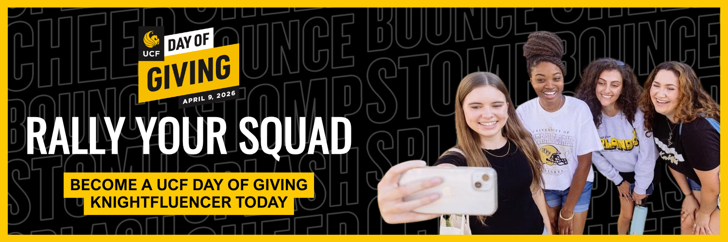 - Spread the word about UCF Day of Giving — and feel free to use our prewritten social posts and premade graphics.